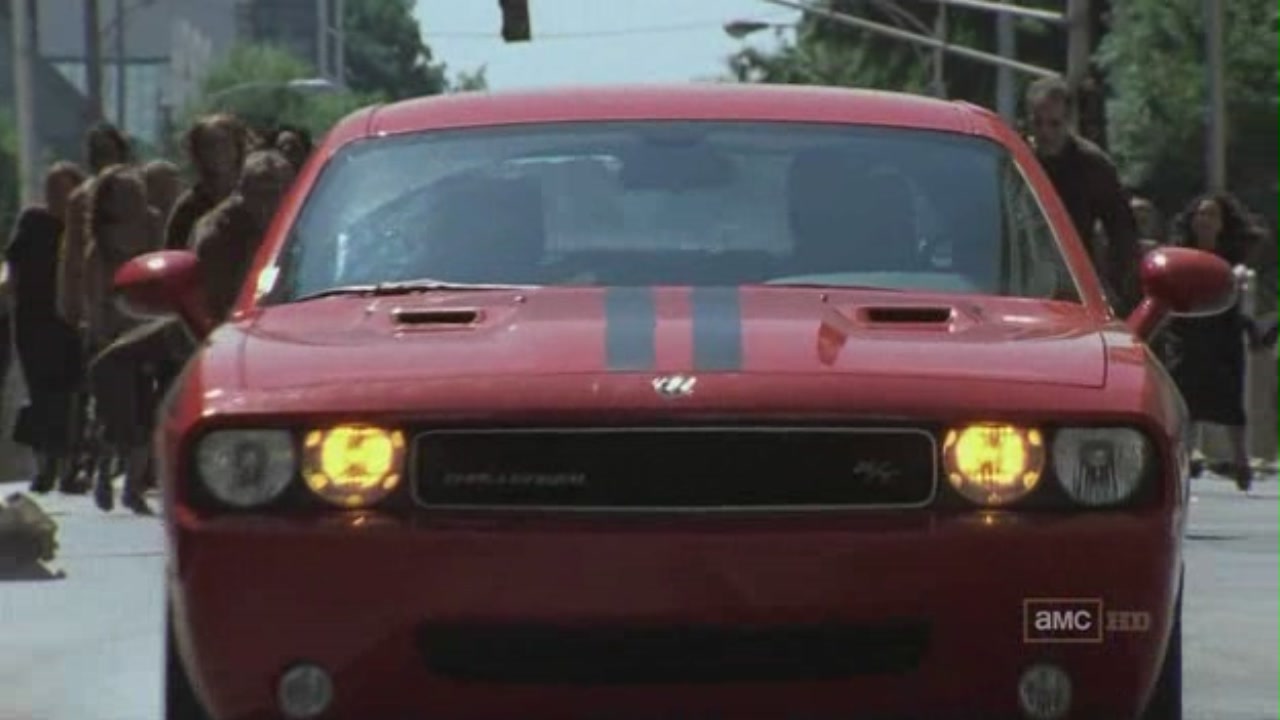 Mustang rojo robado por Glen y con el cual aleja a los zombies del centro comercial en (The Walking Dead, 2010)