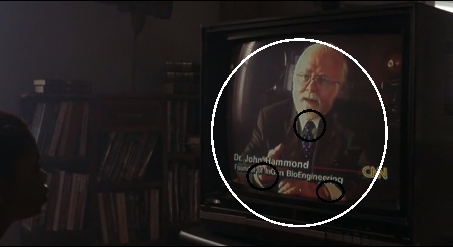 La escena final de esta segunda película viene a reforzarnos la idea de que aunque Hammond ha renunciado a abrir un parque temático de la forma en la que lo concebía en la primera película, no ha renunciado a seguir creando y criando dinosaurios en una isla a la que las personas no podrán ir, como dice en una entrevista que se emite por la televisión. Es por esta renuncia parcial a su sueño por lo que ahora viste de negro, como Malcolm, aunque en su interior, siga gustando de llevar ropa blanca.